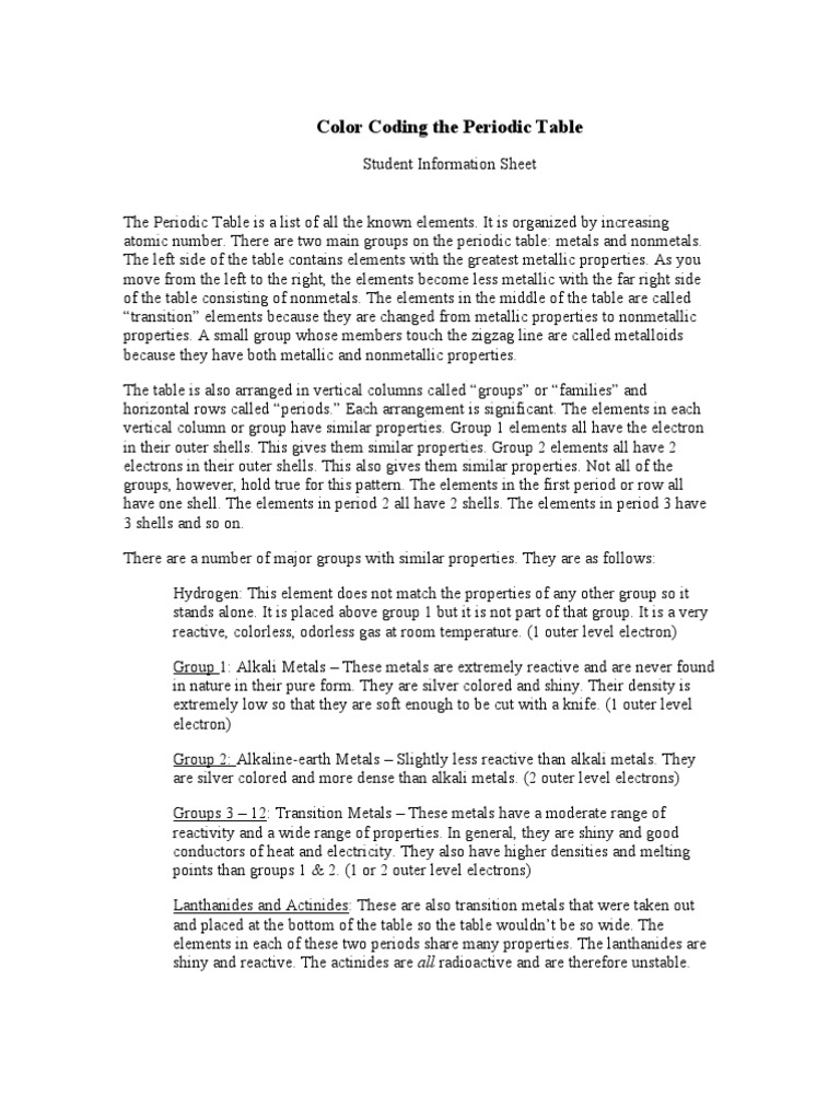 Color coding the periodic table student worksheet answers. Color coding the periodic table rustic keyword periodic table coloring activity gallery color coding the periodic table info sheet color coding the periodic table worksheet for 8th 11th grade. Periodic table coloring activity you have been given a black and white periodic table that needs some color according to the following directions. Some of the worksheets for this concept are introducing the periodic table periodic table work periodic table review periodic table work elements and the periodic table periodic table basics elements and the periodic table.